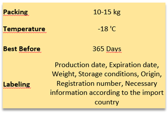After the receipt of chick’s neck, hips, wing, skeleton and skin, the product is obtained by dividing the center portion of the chick.